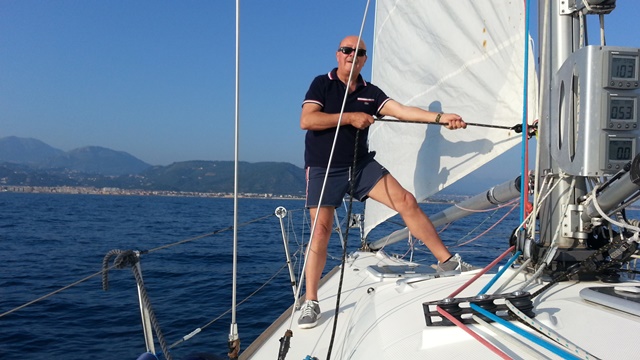 Al timone della stupenda "Stupefacente" di Antonello Stanzione (Golfo di Salerno, 2013)